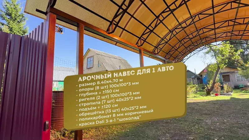 Реализуем такие проекты, как парковки, крытые зоны отдыха и барбекю, козырьки над входом, отдельно стоящие и пристроенные укрытия, беседки. Мы предлагаем сотни проектов арочных, односкатных, двухскатных сооружения для установки на частных и коммерческих площадях.