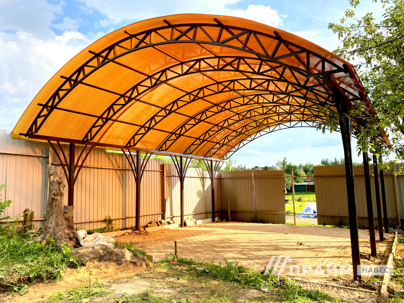 Портфолио «Прайм-навес» – наглядный пример качества изготовленных конструкций. Каждая фотография – это индивидуальный заказ, выполненный компанией. Этот раздел сайта поможет подобрать навесы из поликарбоната для Москвы или Московской области по внешнему виду, особенностям конфигурации.