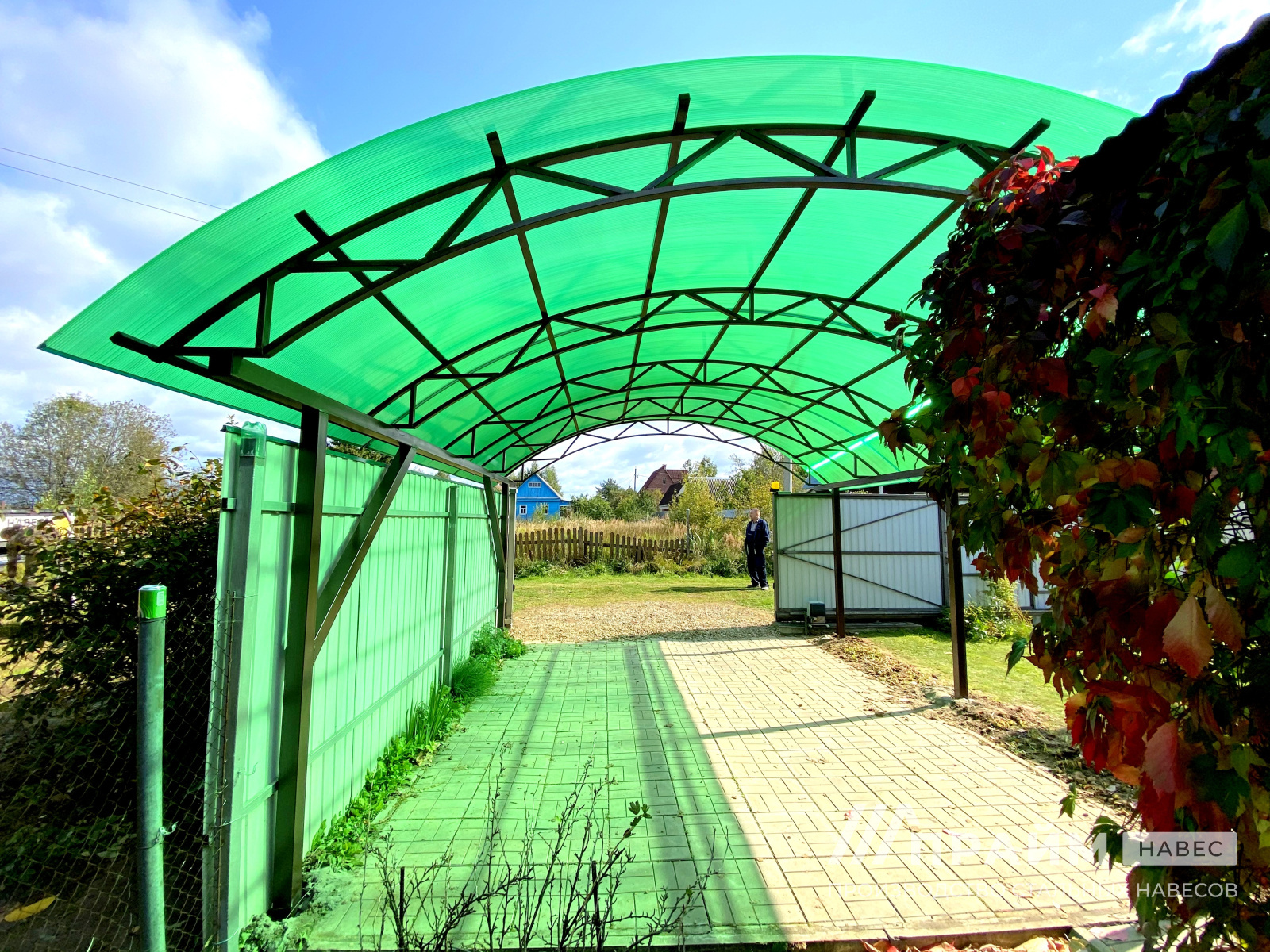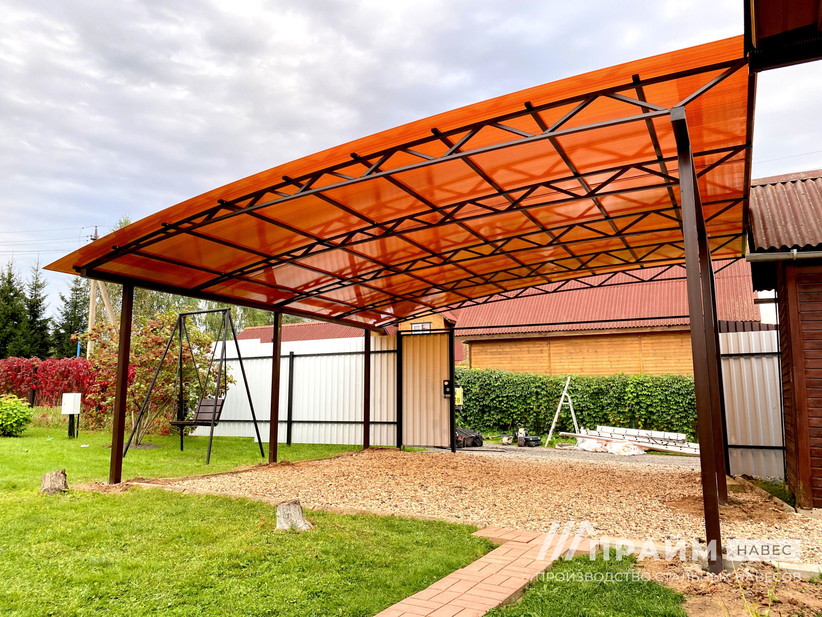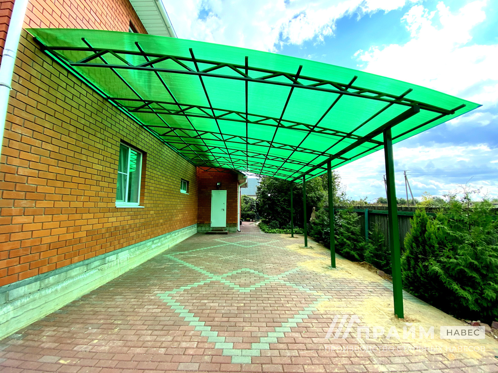 • Внешний вид и цветовые решения. Можно представить будущий навес на своем участке, как будет гармонировать определенный цвет поликарбоната с фасадом дома, ландшафтом.